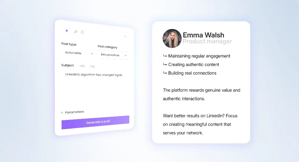 This repurposing capability maximizes content ROI across platforms. A single podcast episode, webinar, or article generates multiple LinkedIn posts highlighting different angles and insights. For content creators publishing across channels, this feature significantly reduces the time spent adapting content for LinkedIn's format.